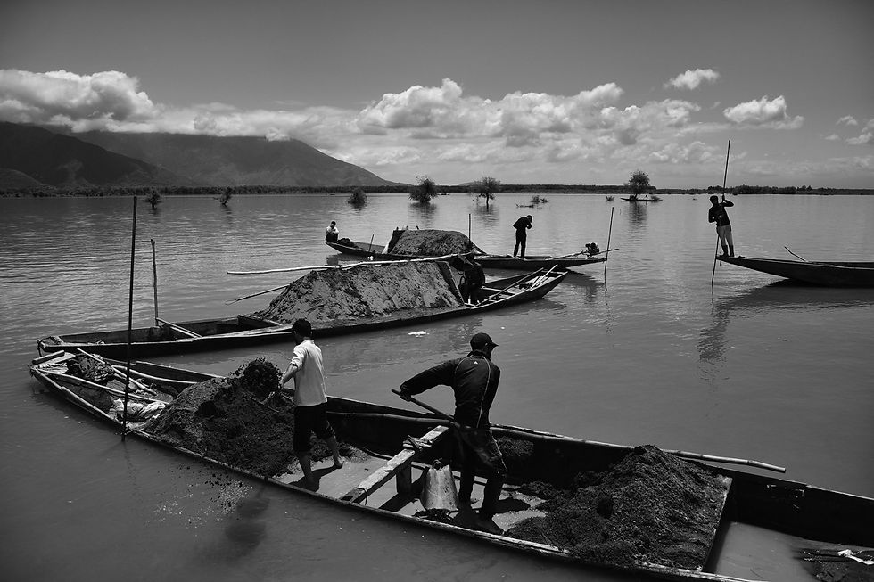 Sand extraction, legal and illegal, has changed the lake's topography, affecting fish habitats. Despite regulations, the demand for sand continues, impacting ecological balance.